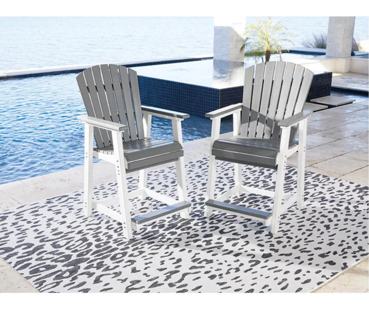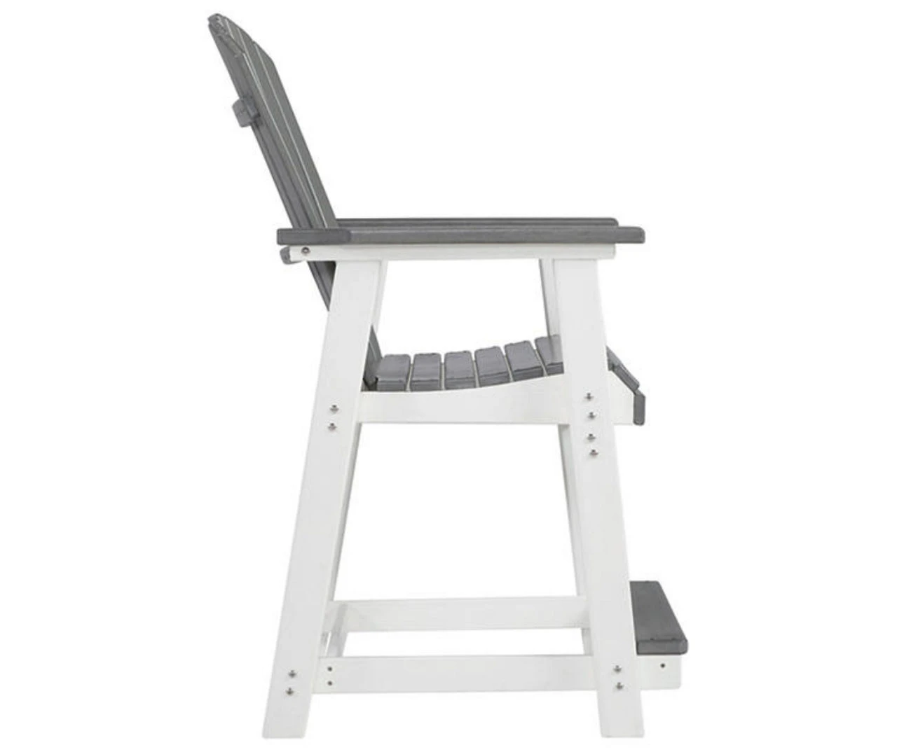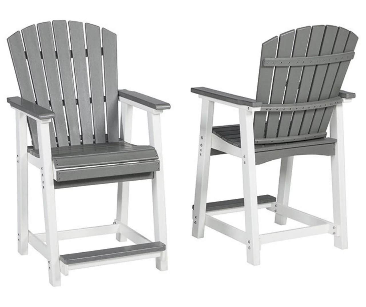 Raise the bar on outdoor living with this bar stool set. Crafted for style, comfort and Mega Tuff durability, the counter height stool caters with a standout two-tone look that pairs gorgeous gray and crisp white for twice the interest.