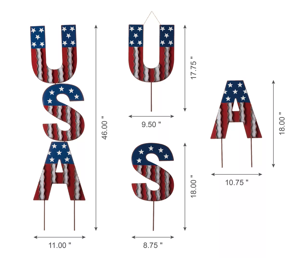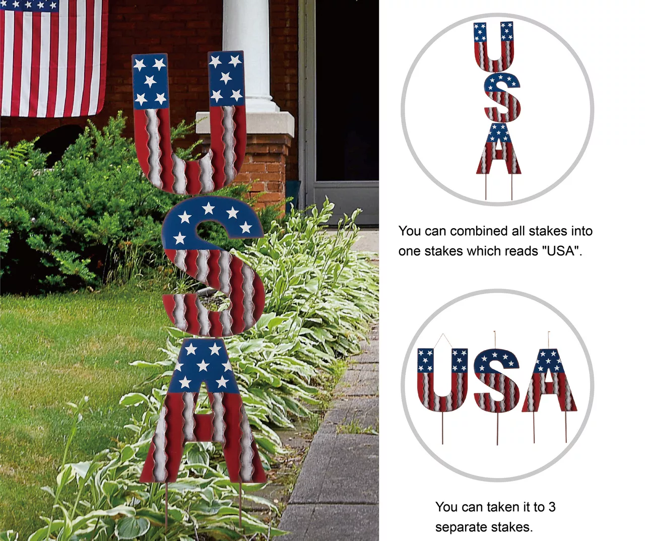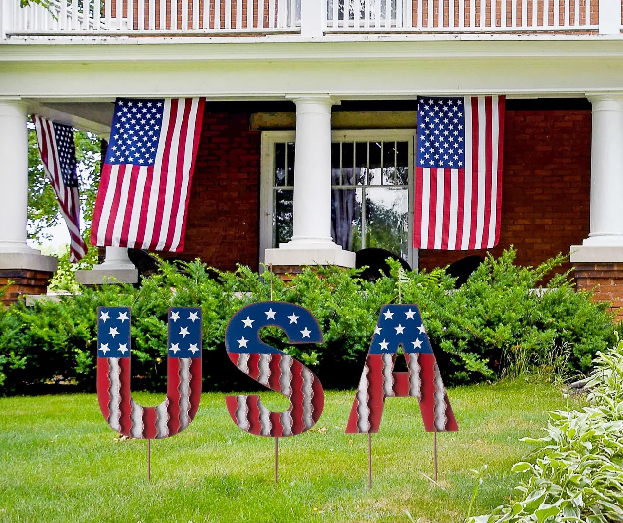 This set of large letter yard stakes adds a patriotic and graphic element to your garden. The letters can be installed together to spell “USA” vertically or can plant individually in your grass horizontally. Display it outdoors to add patriotic flair to the Fourth of July party.