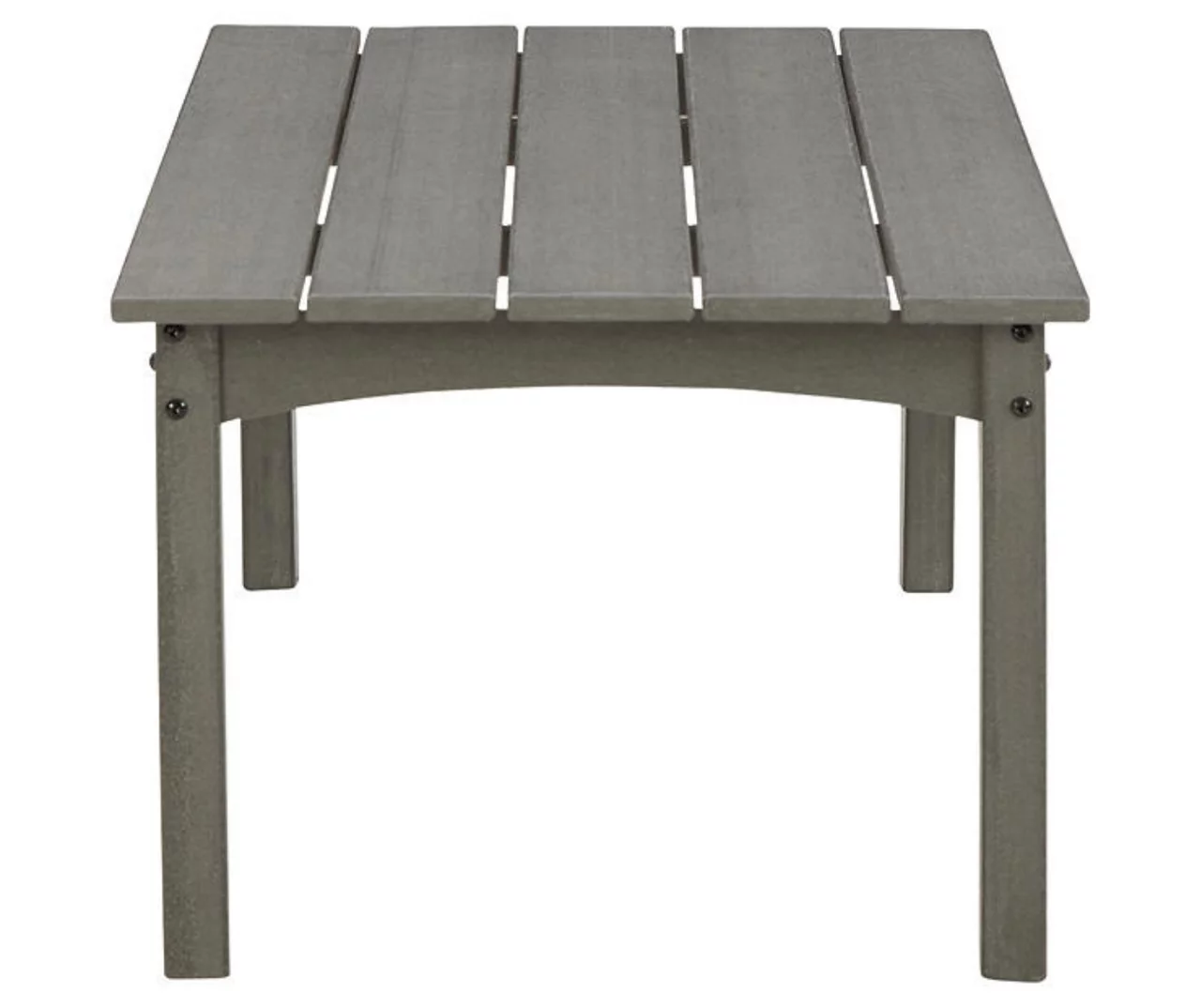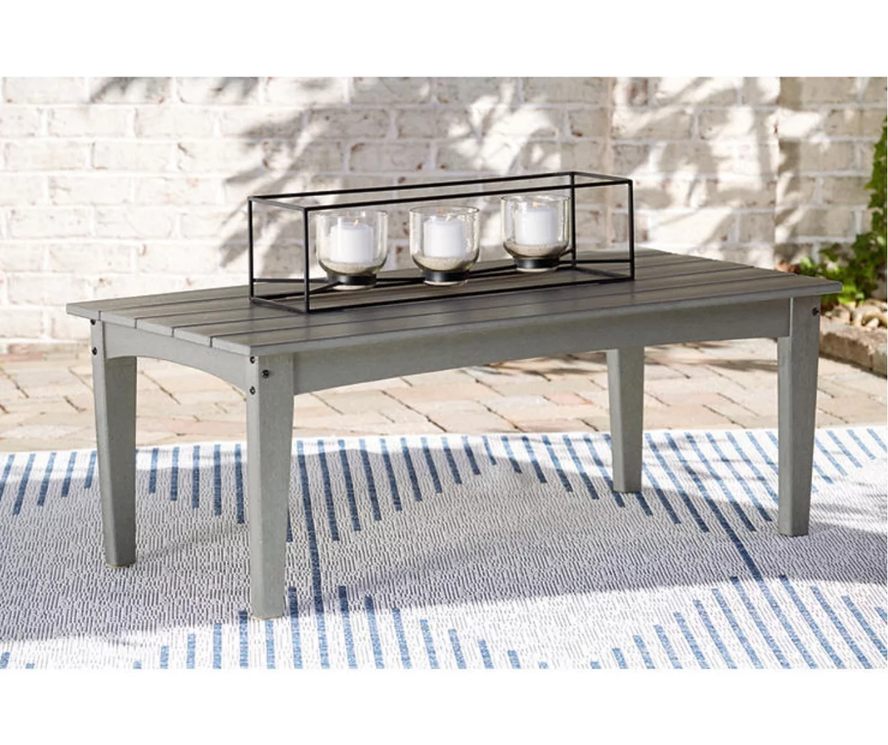It’s the dawn of a new day for gray. Embrace the style trend with this outdoor coffee table. Crafted of HDPE material that combines the exceptional durability and weather resistance you need with the “wood look” you love, this rectangular outdoor coffee table takes alfresco living to a whole new level. Slatted top infuses a plank-style, farmhouse-inspired touch that naturally sheds rainwater.