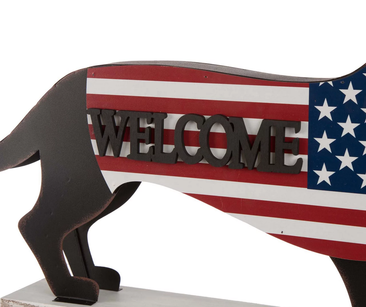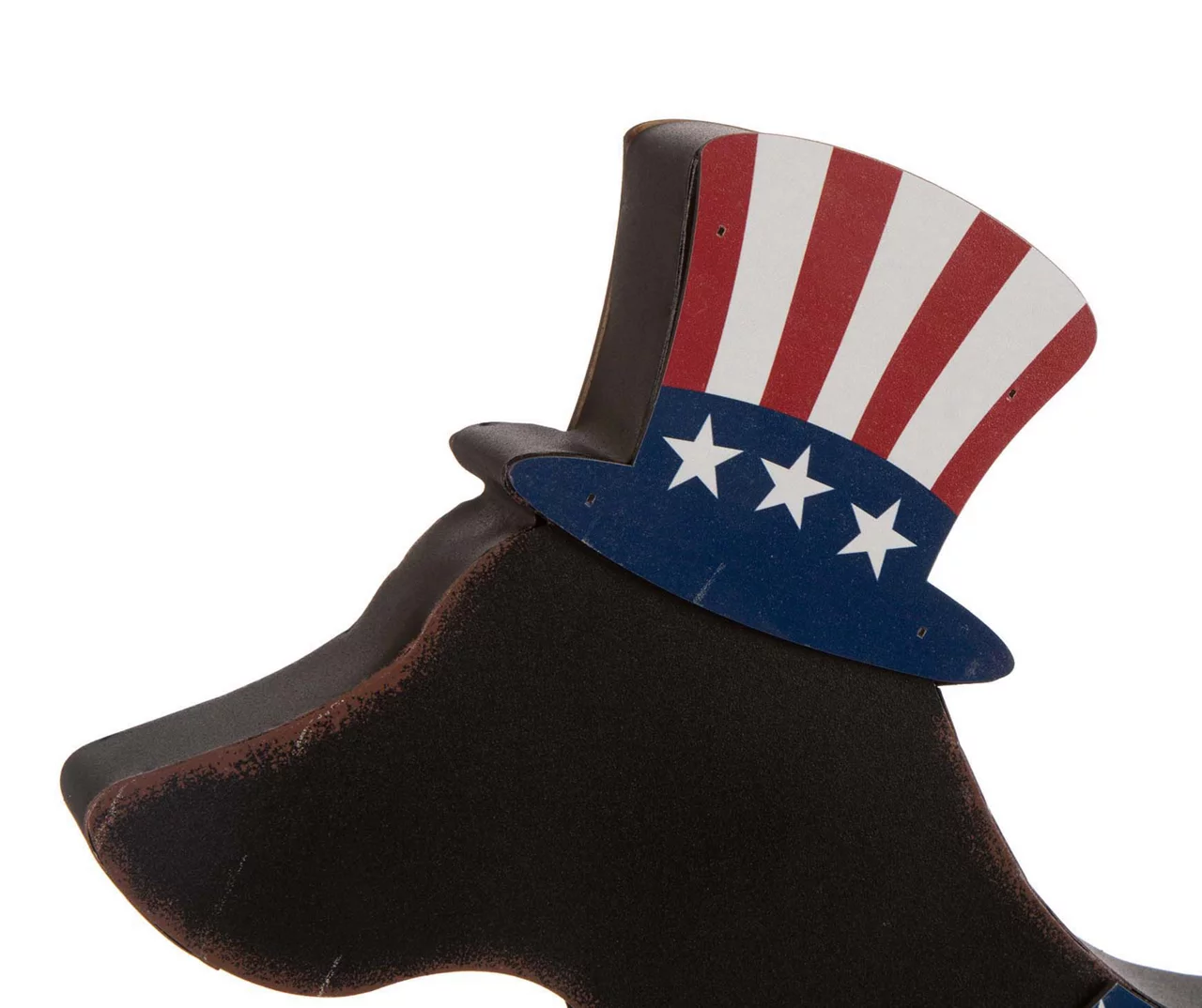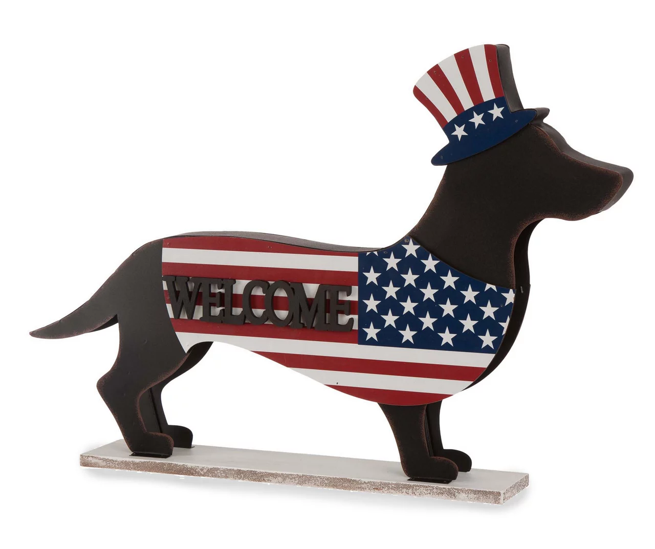 Perch this two-sided Dachshund to greet guests with patriotic flair. Its painted with an American flag and Uncle Sam hat to add color to any surface. Whether placed in an entryway, on a table or in a living space, it’s a fetching accent.