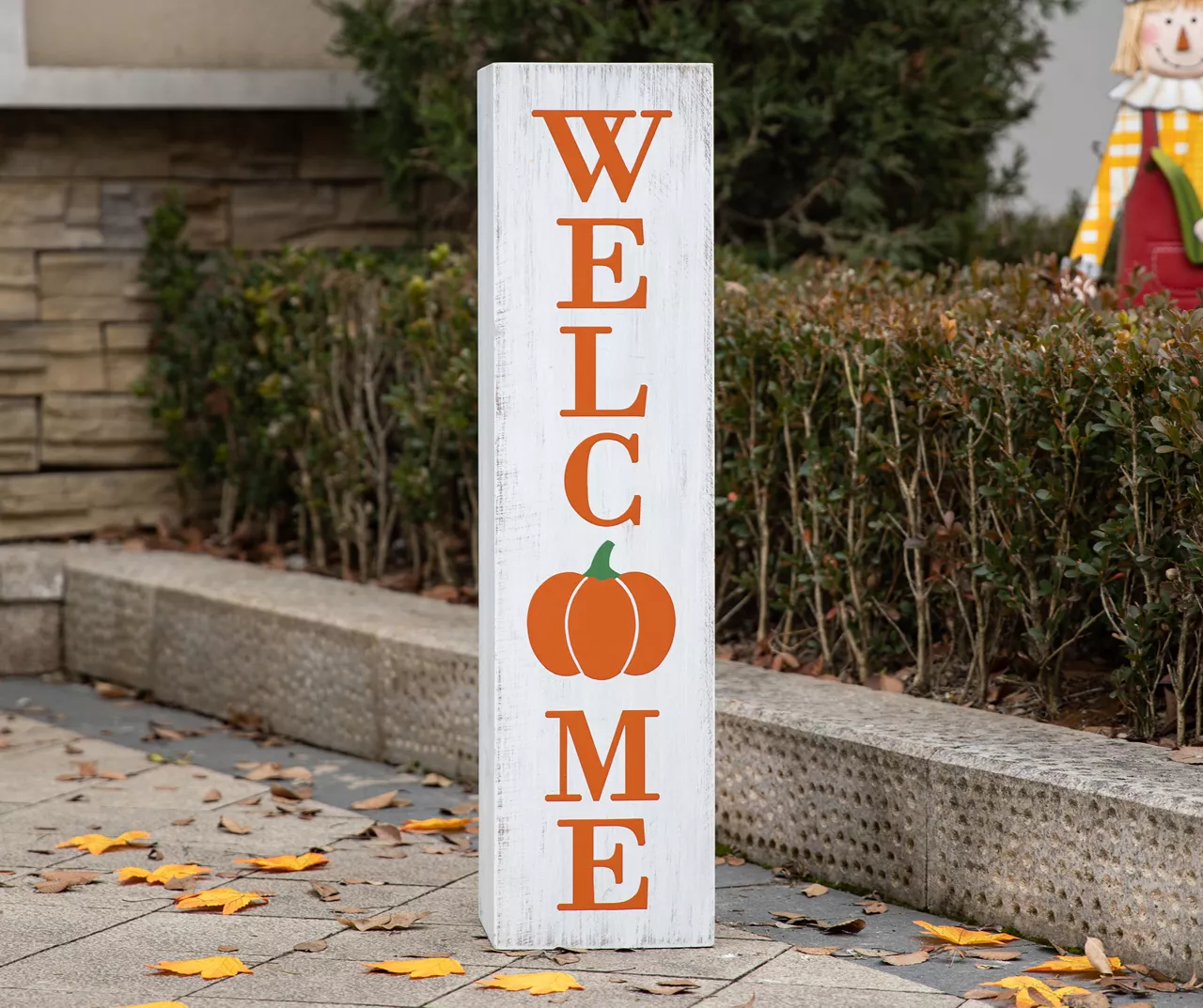 - Pumpkin illustration replaces the “O” in “welcome”