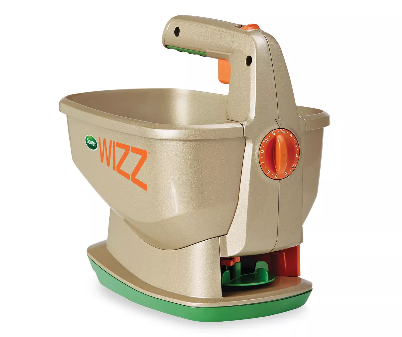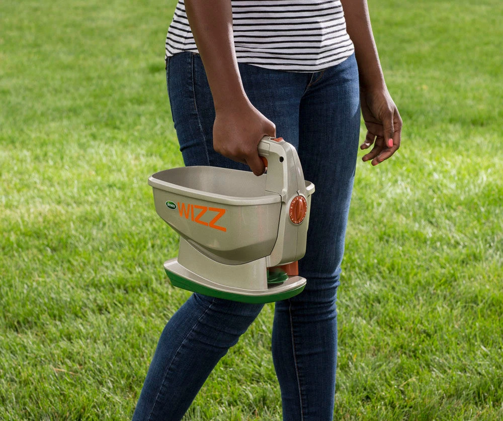 The battery-powered Scotts Wizz spreader is the quick and easy option when it comes to spreading. The Wizz holds up to 2,500 sq. ft. of Scotts lawn care products and features Scotts exclusive EdgeGuard and HandyLock technology. Use it year round to feed, seed and weed! EdgeGuard technology allows for 5 foot broadcast control. Our most advanced spreader yet, powered by 4 AA batteries with 23 settings for unbeatable accuracy. Perfect for lawn seed, fertilizer and weed control products