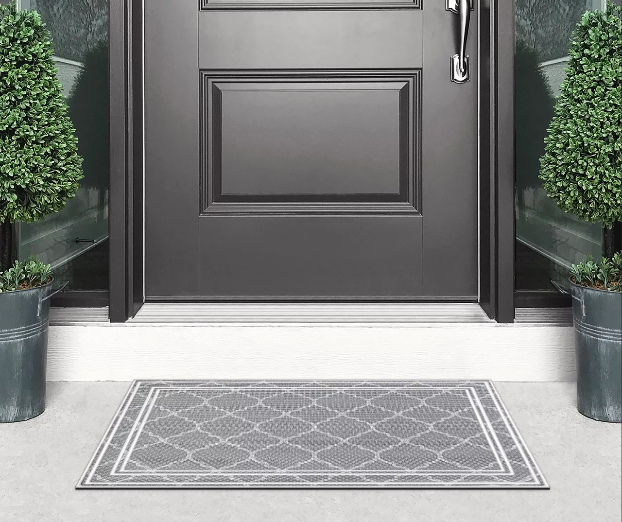 Keep dirt and grime out of your home with this lovely Gray Quatrefoil doormat. Its stain and UV resistant design is perfect for enduring the outdoors, while its heavy duty build promises long-lasting use. An excellent functional piece of outdoor décor that will help keep your house spotless.